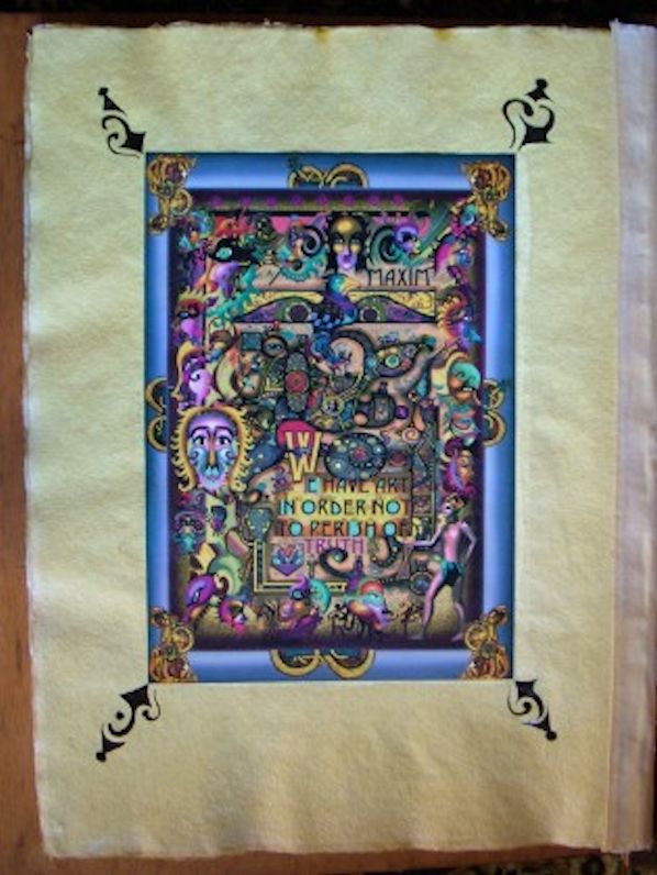 Tighe's long-time patron, Robert Pierse, pursued the purchase of this first of Tighe's large art books until the artist relented and personalized it with a dedication, expressing his appreciation for Robert's support through the years.